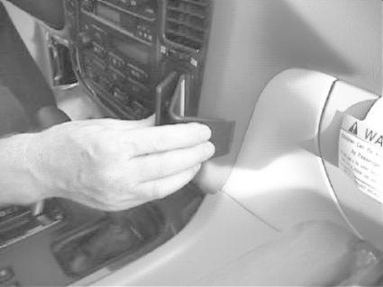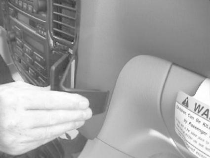 En hand som fäster eller justerar en del på en bilinteriör.