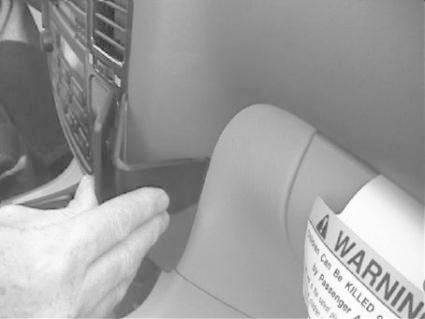En hand justerar en väggpanel i en bilinteriör.