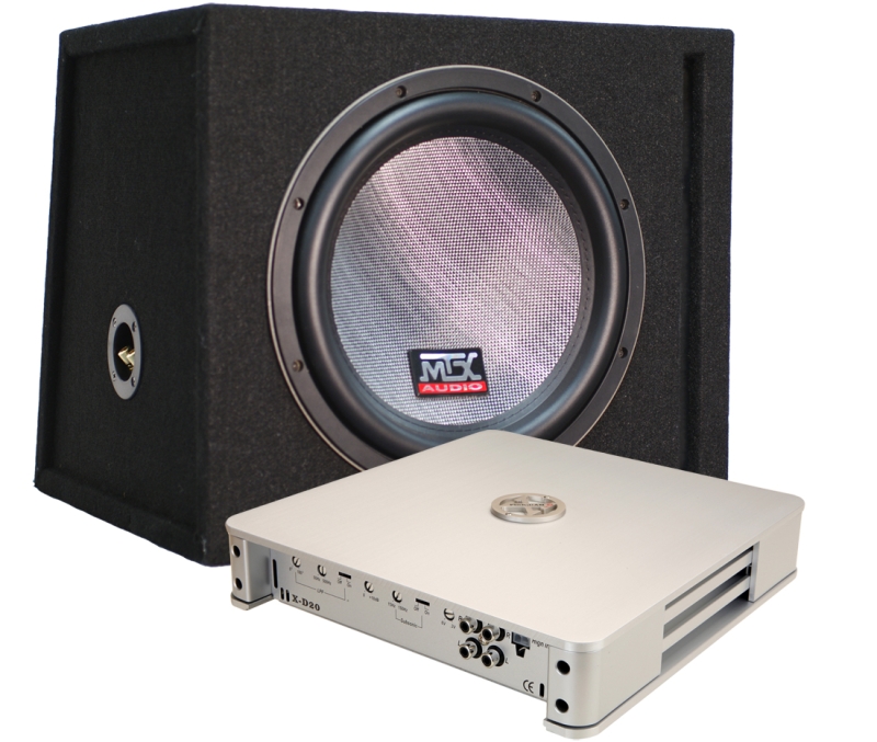 Baspaket med en MTX T6000 12" bas, matchande låda och DLS X-D20 slutsteg.