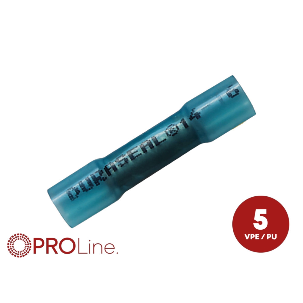 ACV 347246-1-5-p är en uppsättning av 5 stycken lödskarvhylsor med värmekrymp i blå färg. Dessa hylsor är designade för att säkerställa en stark och säker elektrisk anslutning mellan kablar.