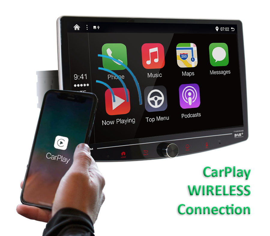 Tack vare stöd för trådlös Apple CarPlay och Android Auto kopplar du upp din telefon på några sekunder. Spela musik, ta emot samtal, svara på meddelanden eller följ navigering. Allt direkt från skärmen, helt utan kabel!