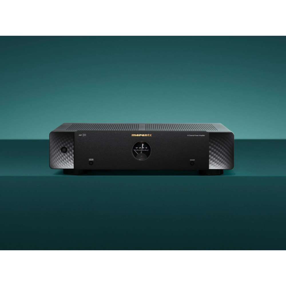 Marantz AMP 30 är ett sexkanaligt slutsteg som kombinerar hög effekt, avancerad signalhantering och ett kompakt format för att driva moderna hemmabiosystem med precision och kontroll. Med 200 W per kanal i 8 ohm och upp till 400 W i 4 ohm är det byggt för att leverera både dynamik och stabilitet, samtidigt som Marantz egen HDAM-teknik och noggrant optimerad klass D-arkitektur sätter grunden för en varm och naturlig ljudkaraktär.