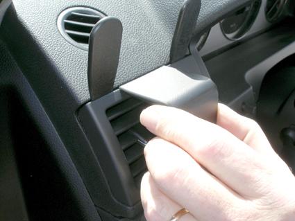 En hand justerar luftventilen på en Mercedes Benz C-Klass 07-10.