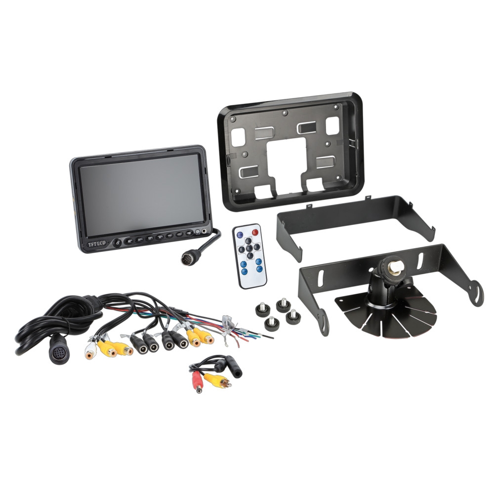 ACV 771000-6203 är en universell 7" monitor med flera funktioner som gör den lämplig för olika användningsområden. Den har fyra videoingångar och stödjer både splitscreen och spegelbildsfunktion, vilket gör det enkelt att övervaka flera kameror samtidigt.