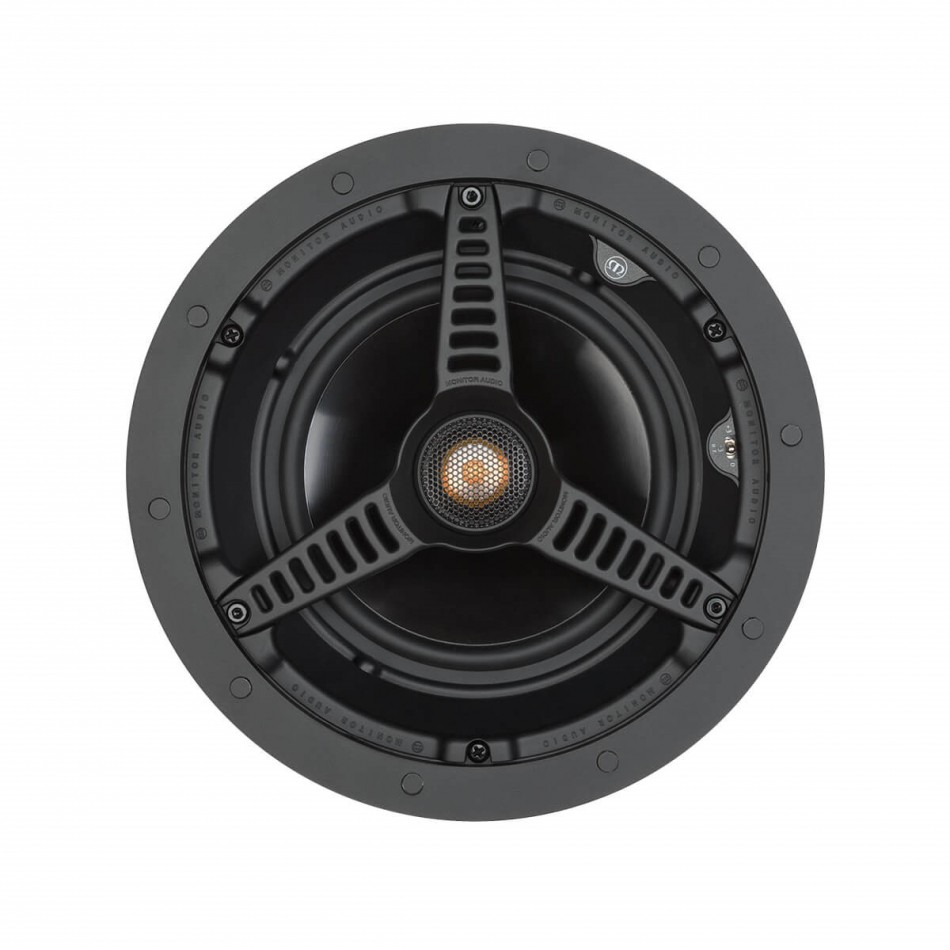C-165 använder Monitor Audios välkända C-CAM diskant, en konstruktion som är uppskattad för sin snabba respons och sin förmåga att hålla ihop detaljer även vid högre nivåer. Tillsammans med MMP-II elementet, där polypropylen förstärkts med metallpartiklar för ökad styvhet, får högtalaren en konsekvent och linjär karaktär som fungerar lika bra i vardagsrum som i hemmabio. Den riktningsbara diskanten gör det möjligt att optimera spridningen efter rumsgeometri och lyssningsposition, vilket är särskilt värdefullt vid flera högtalare i samma installation. Med Tri-Grip-systemet låser högtalaren enkelt och stabilt i taket, och installationen kan kompletteras med backbox för kontrollerad basåtergivning eller fyrkantigt galler för en annan estetisk linje.