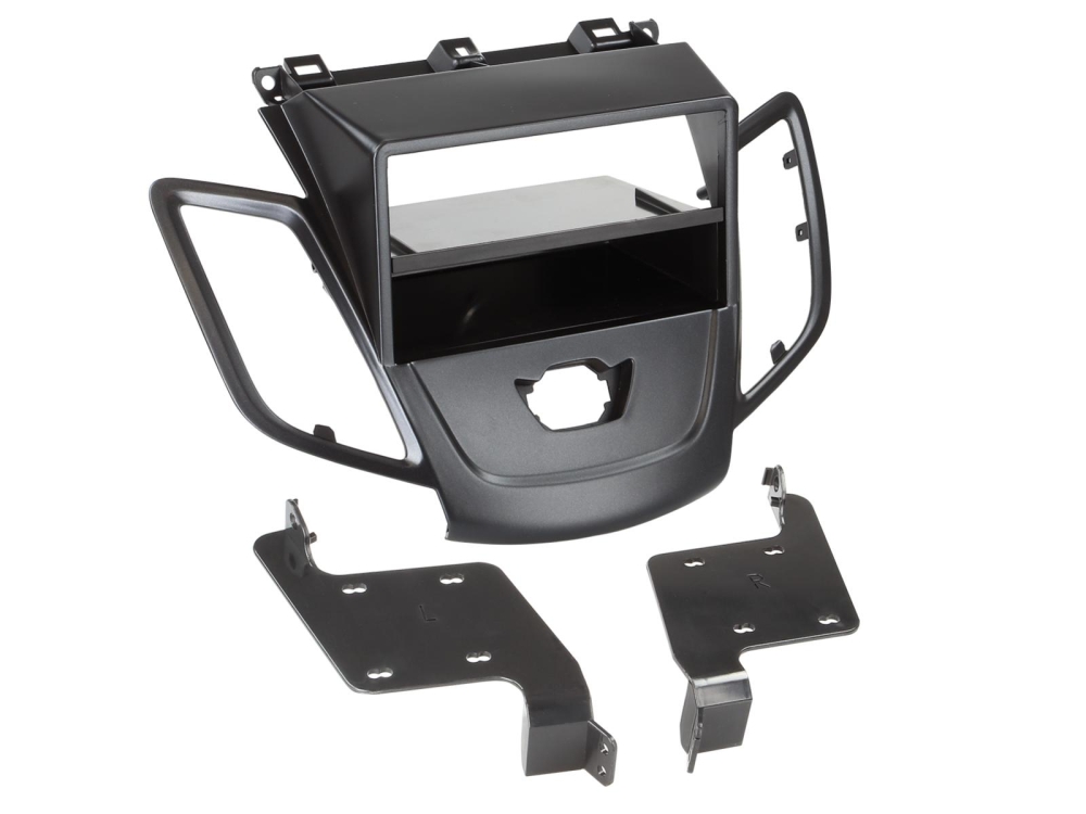 ACV 281114-20-1 är en 2-DIN monteringsram med prylfack i svart, speciellt designad för Ford Fiesta utan multifunktionsdisplay.