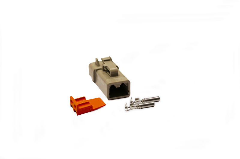 Helt vattentät Deutsch (DTP) kontakt, den vanligaste förekommande kontakten idag på alla typer av extraljus, LED-ramper samt arbetsbelysning på mer än 400W. För strömstyrkor upp till 25A.