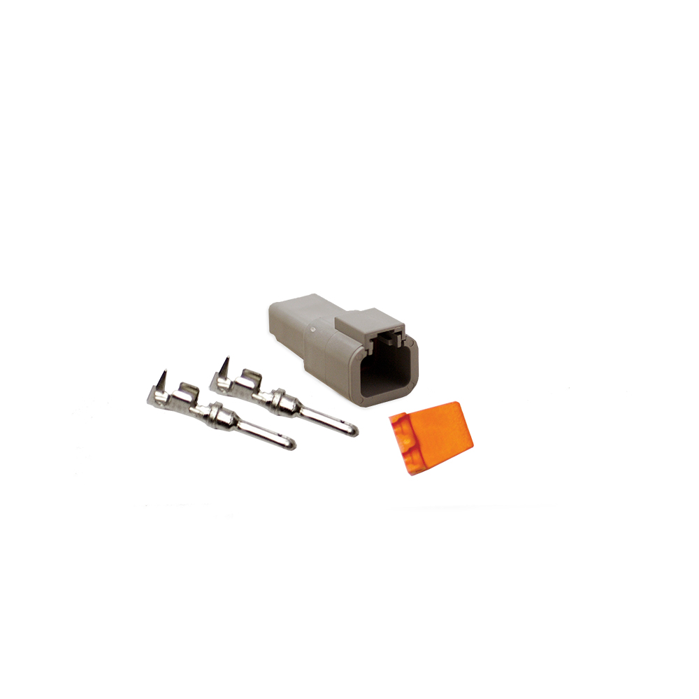 Helt vattentät Deutsch (DTP) kontakt, den vanligaste förekommande kontakten idag på alla typer av extraljus, LED-ramper samt vissa större arbetsbelysningar med en effekt över 400W.