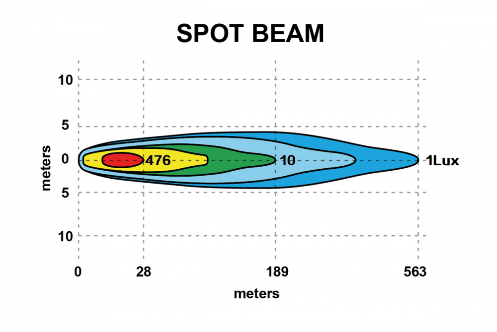 Ljusbilden på R120SLS är av typen "Spot". Detta innebär att ljusbilden lyser långt med samtidigt brett nog att se hela motorvägens bredd.