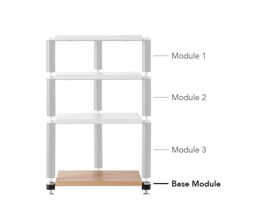 NorStone Copenhagen Base är basmodulen i detta modulära 3-bensrack. Den fungerar som bottenplanet och kan byggas vidare med fler hyllplan för att skapa ett personligt hifi-rack anpassat till anläggningens behov. Konstruktionen är tillverkad i 24 mm tjock MDF med äkta träfanér i ljus ek, kombinerat med svarta ben i solid metall. Till varje hyllplan medföljer spikes och underlägg i krom för stabil placering och effektiv vibrationsdämpning. Basmodulen kan även användas som fristående hylla, till exempel för monoblock eller kraftiga förstärkare, och klarar en belastning på upp till 50 kg per plan.