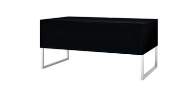 - Snygg bänk som kan ställas på golv på medföljande, kromade ben eller hängas på vägg