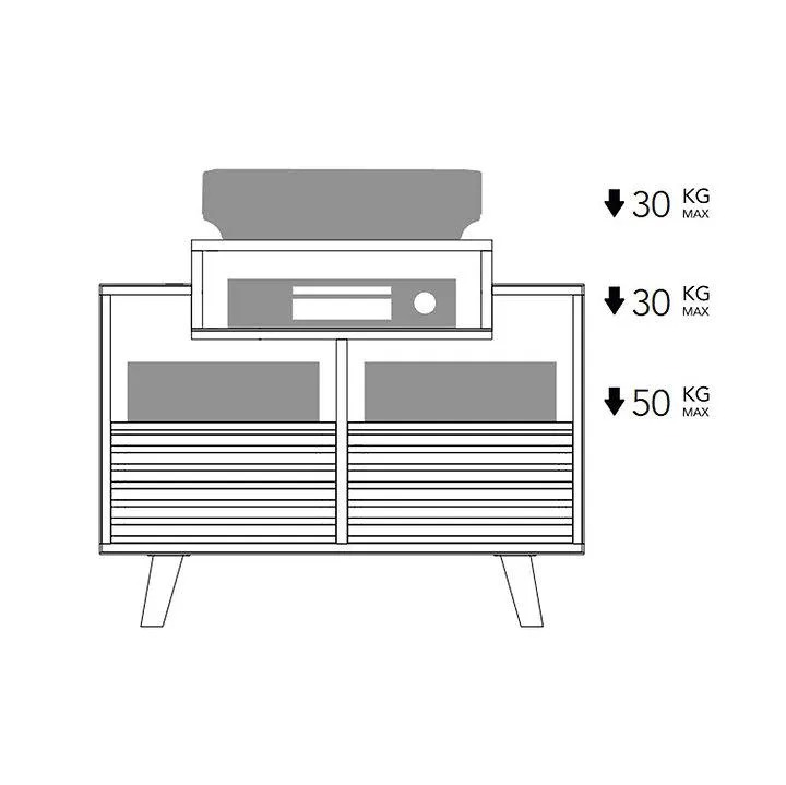 Bänkens mått på 80 cm i bredd gör den kompakt nog för mindre rum men med en närvaro som lyfter hela anläggningen. De ventilerade hyllplanen håller elektroniken sval, kabeldragningen är diskret och den robusta stommen står stabilt på fyra ben med fri åtkomst för städning. Material och utförande är valda för att hålla över tid, och finishen gör att Oslo Vinyl 800 passar lika bra i moderna som klassiska interiörer.