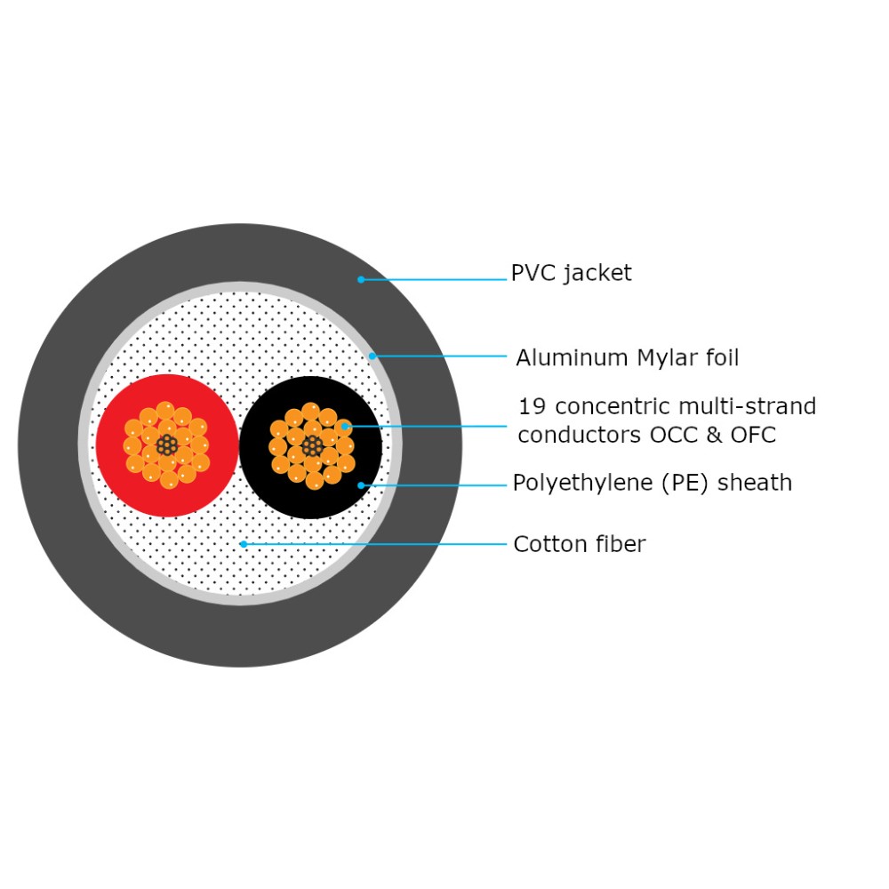 Den tredelade skärmningslösningen är konstruerad för att slå ut både elektromagnetiska störningar och mekaniska mikroresonanser. Bomullsfibrerna i kärnan dämpar mikrovibrationer som annars kan påverka ledarnas inbördes position. Aluminium mylar-lagret kapslar in hela konstruktionen och håller brusnivån nere även nära nätkablar eller aktiva komponenter. Resultatet är en ljudbild som upplevs renare, med tydligare rumsinformation och stabilare instrumentplacering.