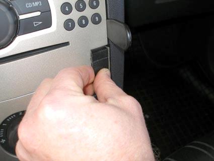 En hand justerar eller tar bort en del av bilens kontrollpanel.