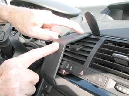 En hand justerar en del av instrumentpanelen i en Opel Meriva.