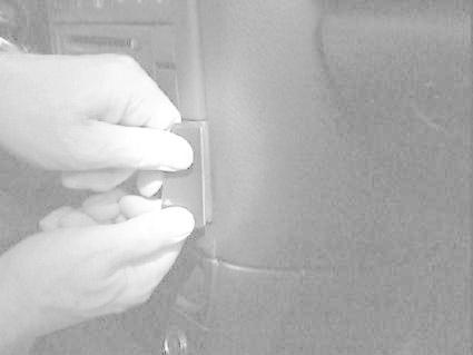 Händer som håller i en bilens komponent, troligen ett reglage eller en knapp.