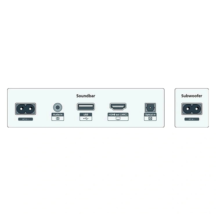 Anslutningar: HDMI ARC, optisk ingång, 3.5 mm ljudingång, USB, Bluetooth