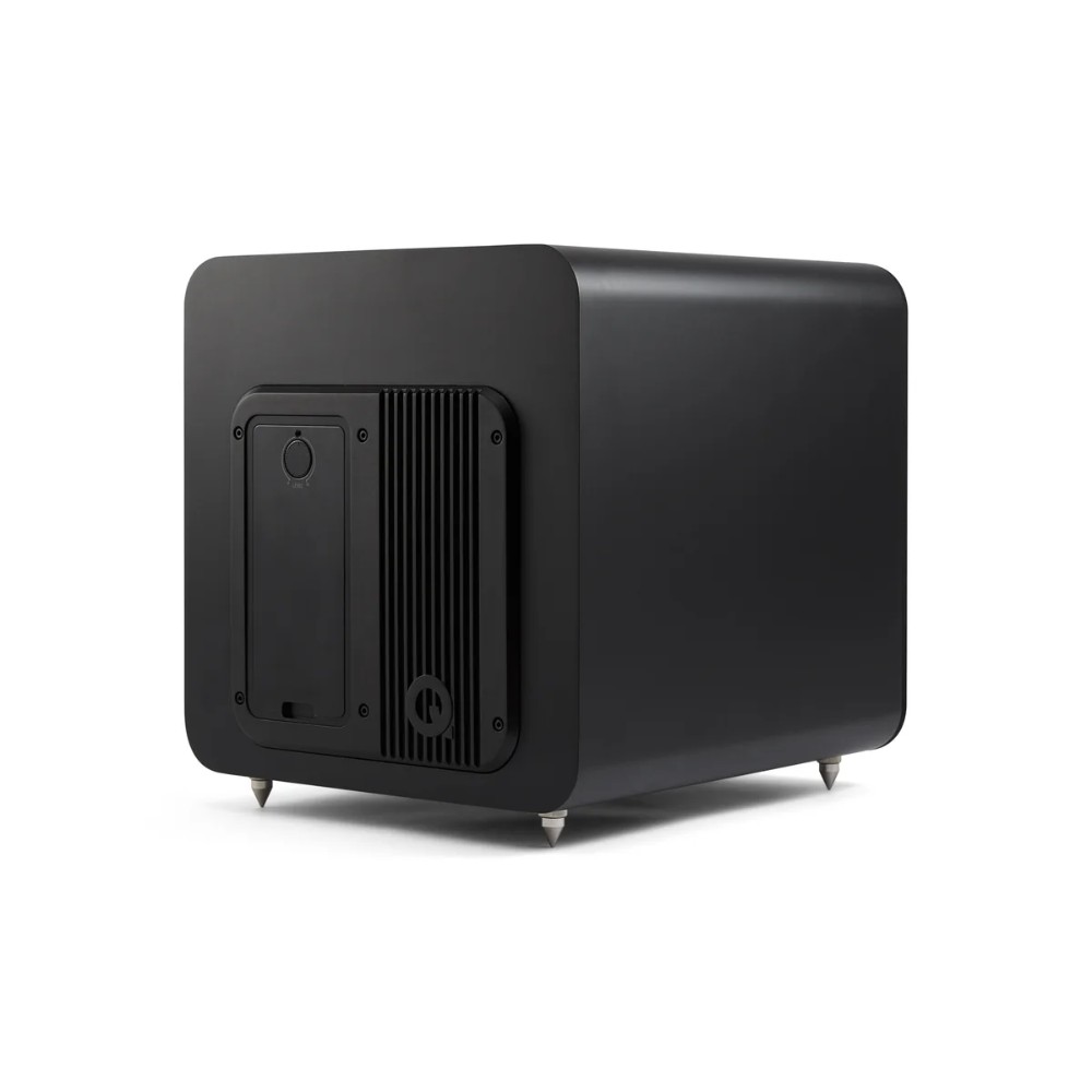 Den inbyggda förstärkaren består av fyra digitala effektsteg i en parallell BTL-konfiguration, vilket ger hög verkningsgrad och god kontroll över baselementet. Kombinationen av 250 W kontinuerlig effekt och 500 W peak gör att SUB100 kan leverera höga nivåer utan att tappa greppet om konrörelsen, något som märks i den stabila och distorsionsfattiga basåtergivningen.