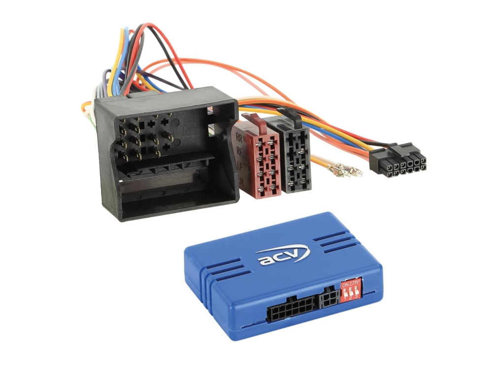 ACV 42a-1323-001 är en stalkadapter som möjliggör att behålla de ursprungliga funktionerna för rattkontrollen vid byte av bilens fabrikmonterade radio till en eftermarknadsenhet.