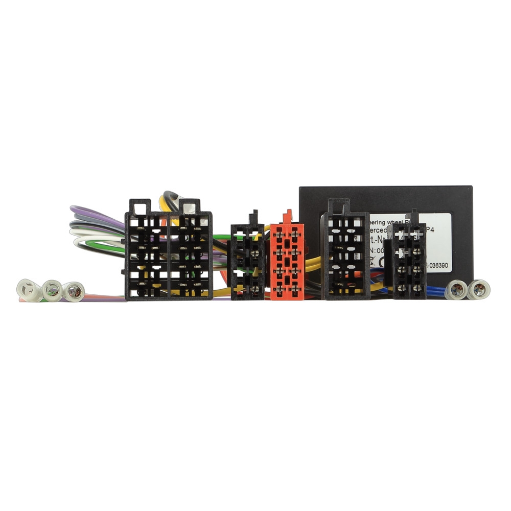 ACV 42-1190-902 är en rattstyrningsadapter som gör det möjligt att behålla rattkontrollerna i din Mercedes när du byter ut den originala huvudenheten mot en eftermarknadsradio från JVC. Det är viktigt att du jämför de avbildade kontaktledningarna med de kontakter som finns i din bil för att säkerställa att de passar både optiskt och tekniskt. Kontrollera också att de listade originalhuvudenheterna ursprungligen fanns i ditt fordon. För hjälp kan du kontakta vår support.