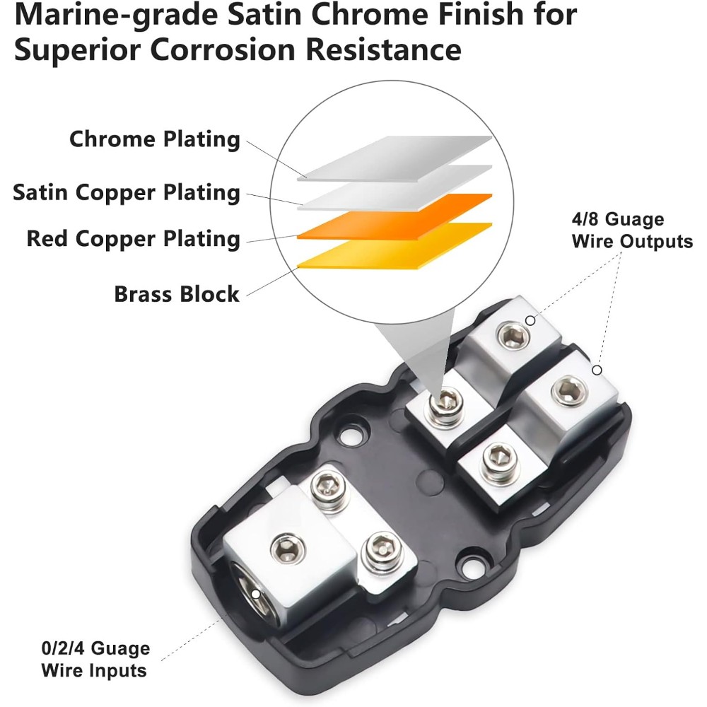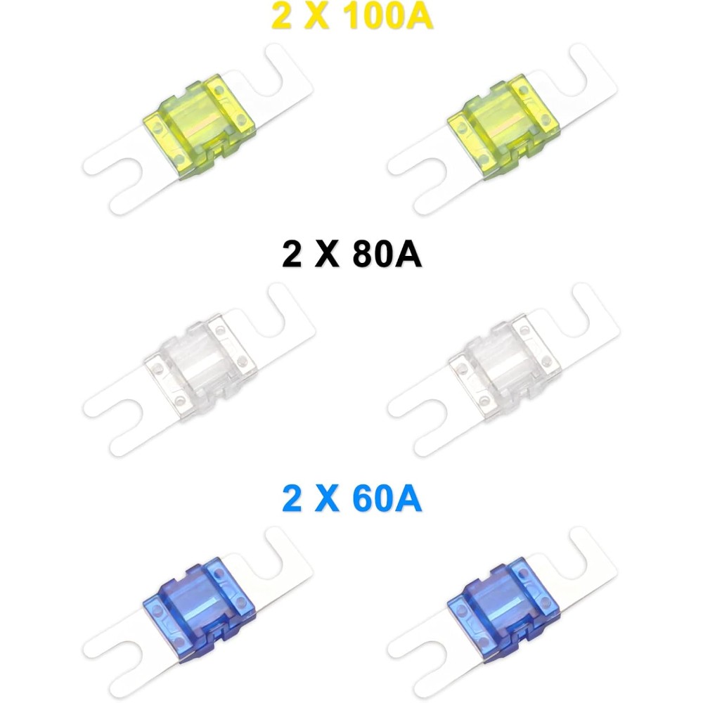 - Mini-ANL-säkringar medföljer (60A, 80A, 100A)