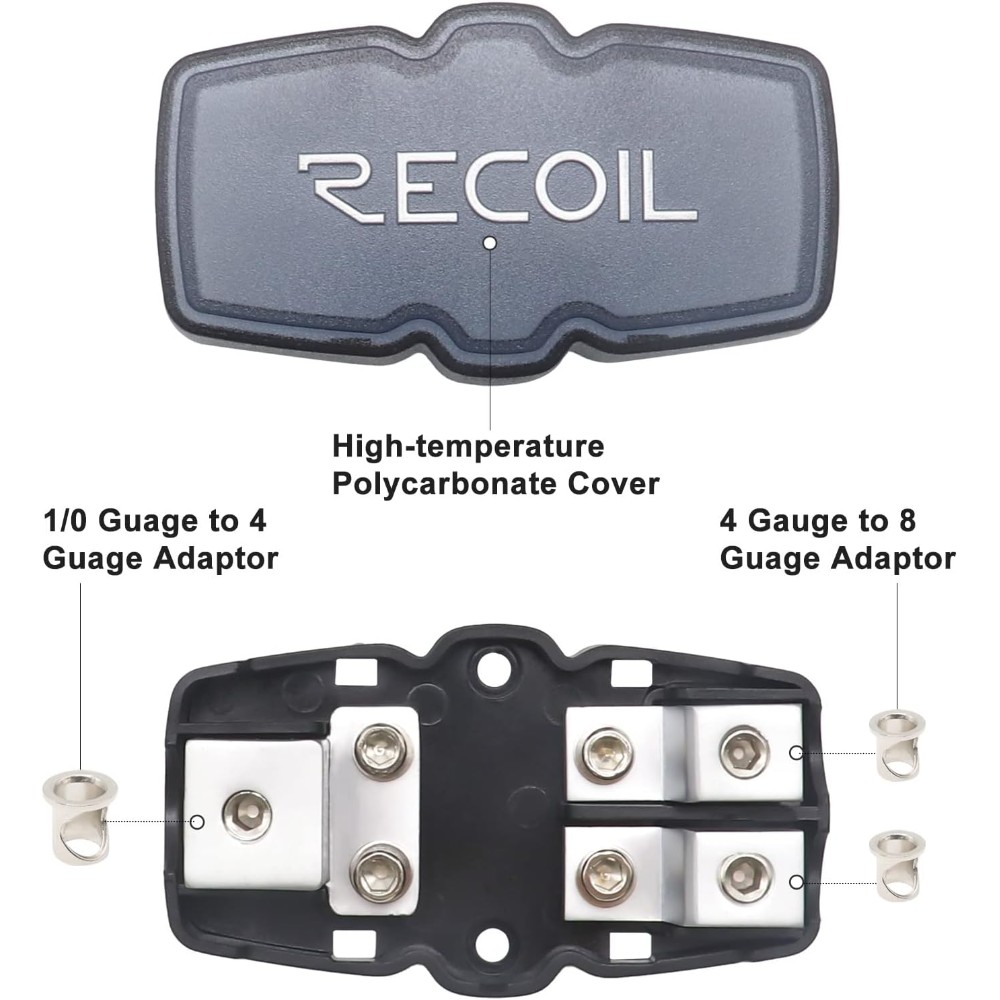 Recoil MFH12 är en kompakt 2-vägs säkringshållare med mini-ANL som gör det busenkelt att dela upp en grov matning till två utgångar. Perfekt när du vill bygga snyggt, säkert och slippa mecka med skarvar och lösa säkringar. In med grovt, ut med två separata matningar. Klart.
