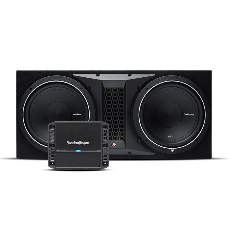 Punchigt och riktigt prisvärt baspaket med Rockfords egna baslåda P1-2x12 och kraften kommer från P300X1!