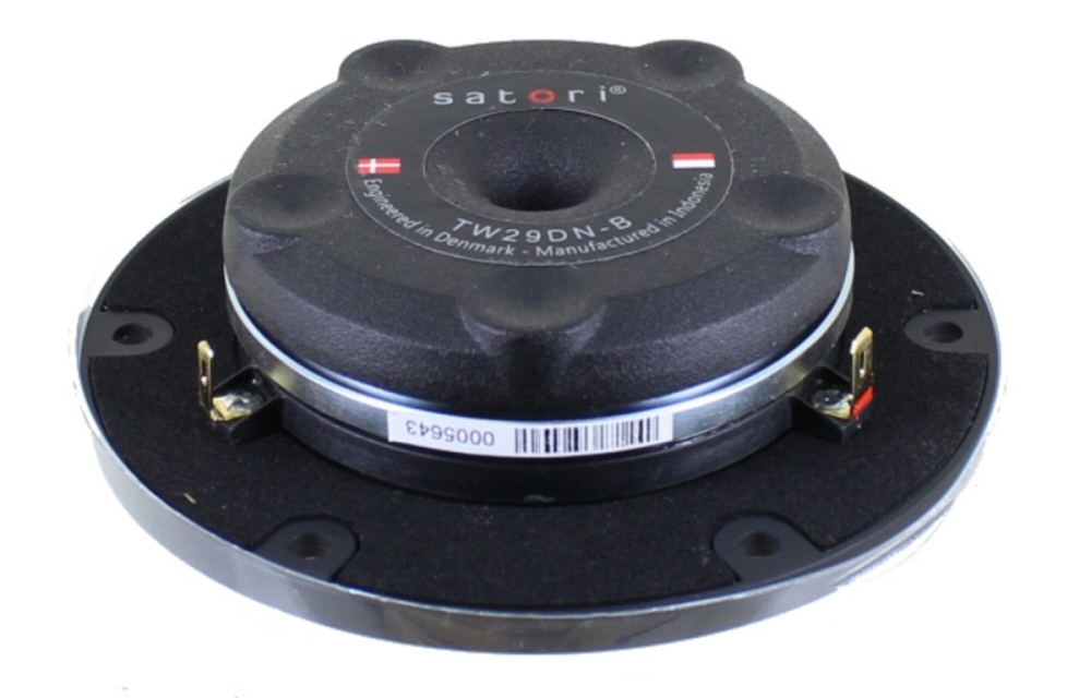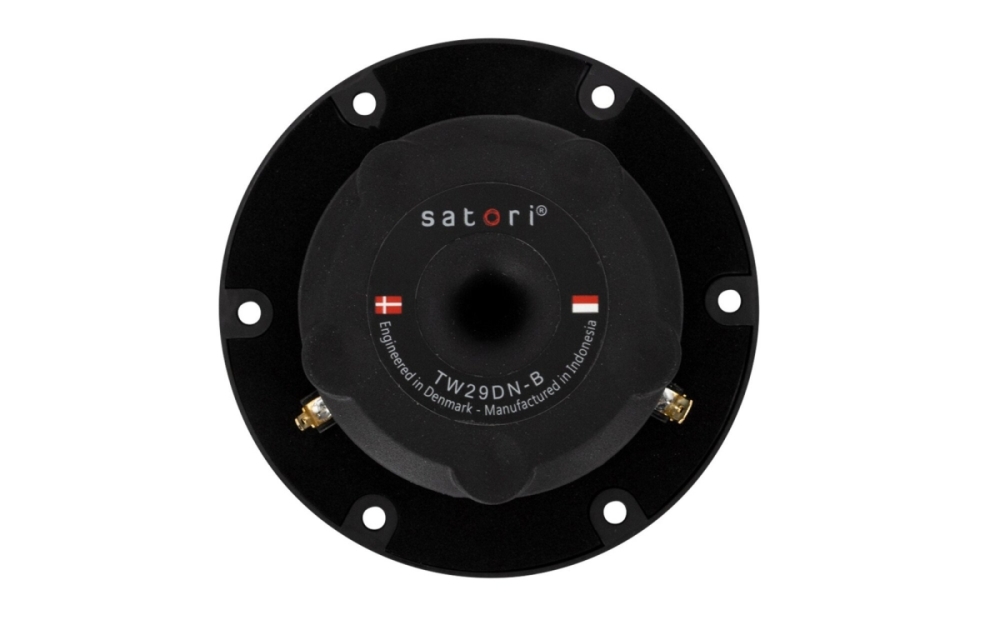 Satori TW29DN-B har en textildome med stor surround som ökar den akustiska utsignalen för bättre dynamik och ljudtryck. De dubbla balanserade kompressionskamrarna ger låg distorsion även vid höga nivåer, medan kopparkapslarna minskar talspoleinduktansen och fasvridningen för en renare och mer linjär frekvensgång. Den mekaniskt avkopplade aluminiumfrontplattan minimerar resonanser som annars kan färga ljudet. Resultatet är en diskant som återger detaljer och luftighet utan hårdhet.