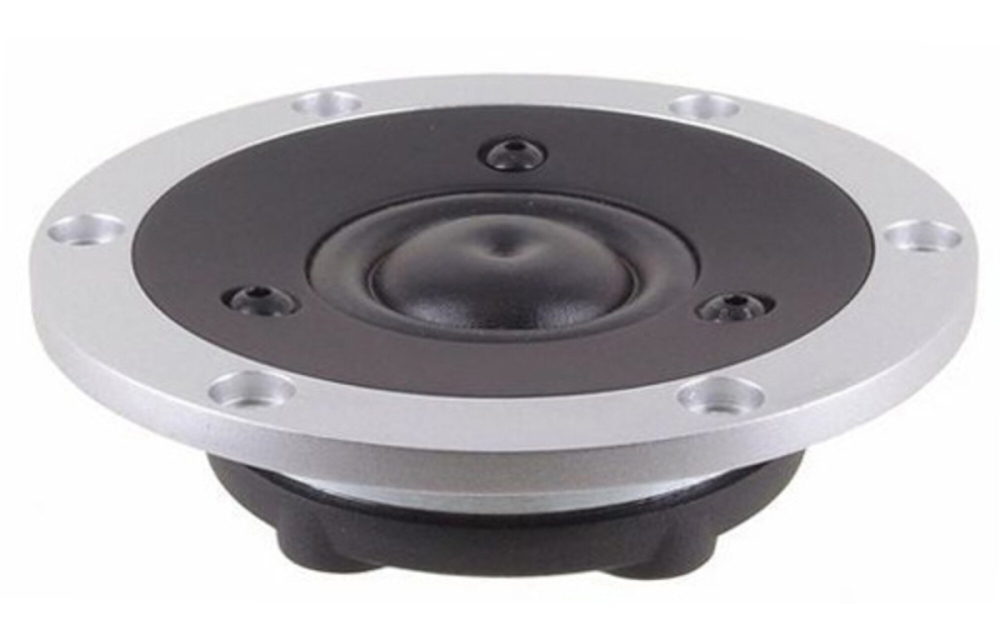 Diskanten har en standardinfällningsdiameter på Ø70 mm och en yttre diameter på Ø103,8 mm, vilket gör den enkel att montera i många högtalarlådor. Den tvådelade aluminiumfrontplattan med mekanisk avkoppling minskar resonanser från fronten och ger ett stabilt montage. Med ett monteringsdjup på cirka 26,7 mm passar den även i trängre utrymmen. Skruvhålen är anpassade för flexibel montering med sex mindre och sex större hål för säker fastsättning.