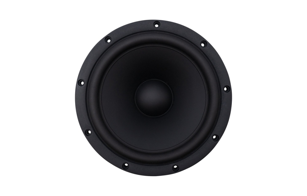 Den hårda papyruskonen är tillverkad internt och kombinerar låg vikt med god styvhet, vilket ger snabb respons och låg distorsion. Motorn är optimerad med undercut polstycke och dubbla kortslutningsringar som effektivt minskar oönskade magnetiska störningar. Det välventilerade aluminiumchassit minskar kompression och håller temperaturen nere, vilket ger stabil prestanda även vid hög belastning. Den linjärt symmetriska upphängningen säkerställer att membranet rör sig exakt och kontrollerat för ett rent och dynamiskt ljud.