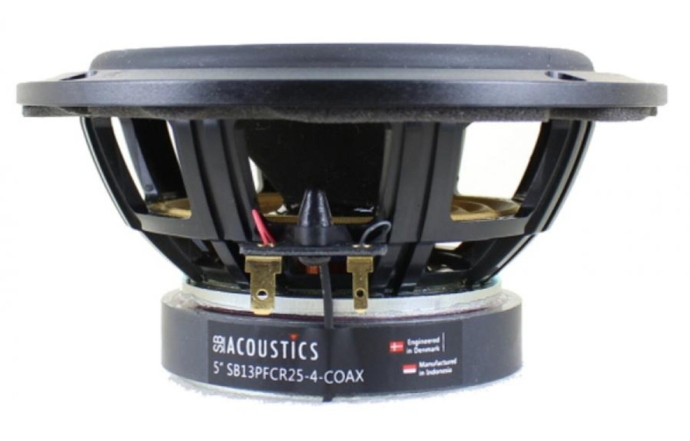 SB13PFCR25-4-COAX:s konstruktion med koaxialt placerad diskant ger en punktkälla som förbättrar ljudets sammansättning och spridning i rummet. Naturfiberkonen och den mjuka gummiringen ger låg distorsion och snabb transientrespons, vilket gör elementet lämpligt för detaljerad och naturlig återgivning i både hemmabio och bilstereo. Monteringsdjupet på 69 mm och standardbaffelutskärning gör installationen enkel i vanliga chassin.