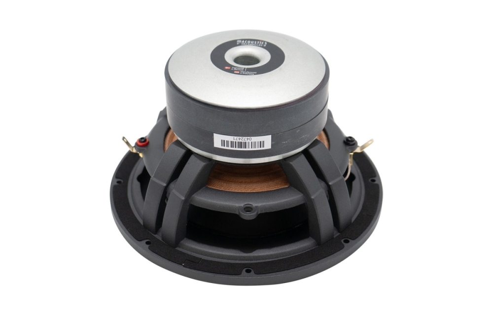 Elementets mineralfyllda polypropenkon ger en styv och kontrollerad membranyta som minimerar oönskade resonanser. Den långslagiga designen kombinerat med en låg dämpad gummiupphängning ger hög rörelsefrihet och bra transientrespons. Tack vare den ventilerade aluminiumkorgen och motorsystemet hålls temperaturen nere vilket ger stabil prestanda även vid höga effektnivåer. Det innebär att du får en kraftfull och exakt bas som passar både i kompakta och medelstora subwooferlådor.