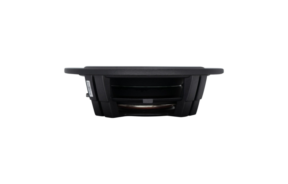 Den styva aluminiumkonen tillsammans med det gjutna aluminiumchassit ger en stabil och lågdistorderad rörelse, vilket förbättrar basåtergivningen. Gummiupphängningen med medelhård dämpning säkerställer linjär kolvrörelse och mekanisk stabilitet även vid höga belastningar. Den ventilerade konstruktionen minskar kompression och gör att radiatorn klarar längre slaglängder för bättre dynamik och effekttålighet.