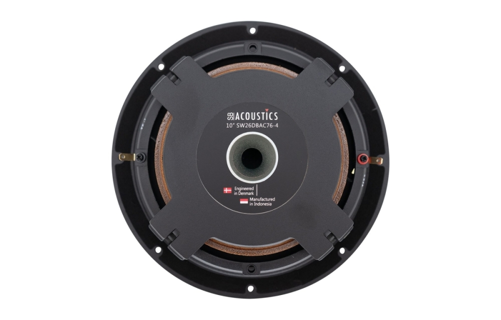 SB Acoustics SW26DBAC76-4 är ett 10-tums baselement med en patenterad “shallow” design som ger låg monteringshöjd utan att tumma på basprestandan. Elementet passar särskilt bra i slimmade lådor med sluten konstruktion och klarar 200 W effekt tack vare robust aluminiumkonstruktion, kortslutningsringar och en kraftfull neodymmotor. Det ventilerade chassit minskar kompression och ger stabil rörelse för djup och ren basåtergivning.