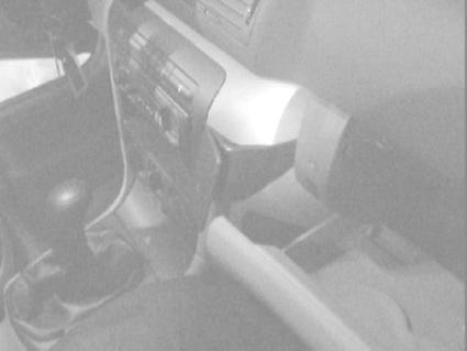 Bild visar ett bilinteriör med växelspak och kontrollpanel.