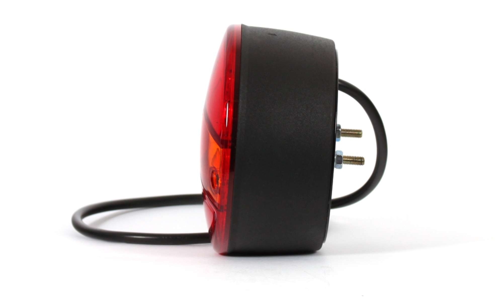 Rund LED baklampa med tre funktioner: bakljus, bromsljus och blinkers. Enkel design och lätt att montera.