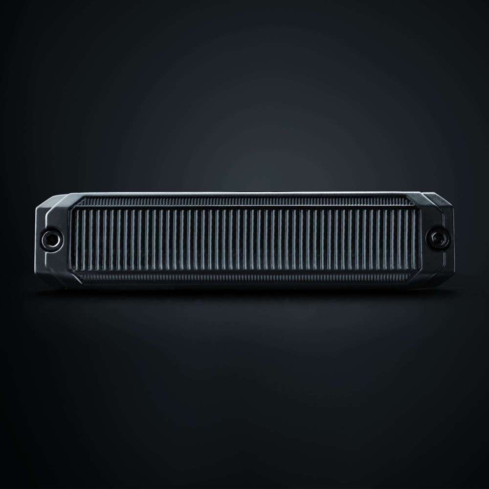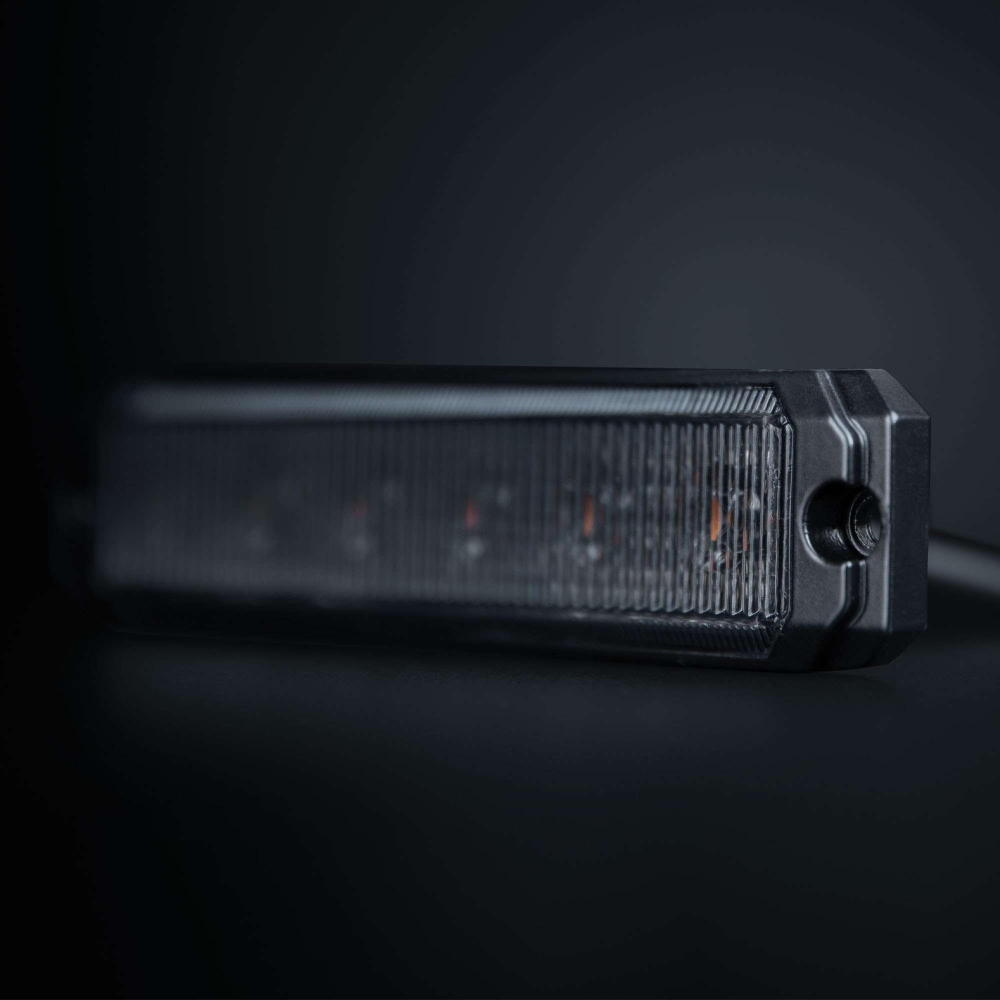 DARK KNIGHT SM6 har en slimmad design med endast 8 mm djup som ger ett diskret och modernt utseende på fordonet. Höljet är tillverkat i aluminium och linsen i tålig polykarbonat, vilket tillsammans med IP69K-klassningen gör den motståndskraftig mot vatten, damm och korrosion. Det gör varningsljuset lämpligt för både tuffa väderförhållanden och krävande användning.