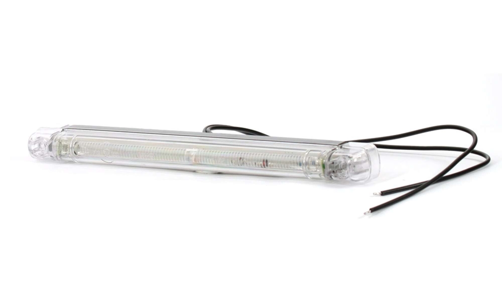Avlångt vitt LED positionsljus med nio dioder och klart glas. Robust design som andas kvalité och hållbarhet.Produktblad
