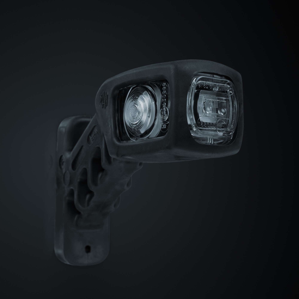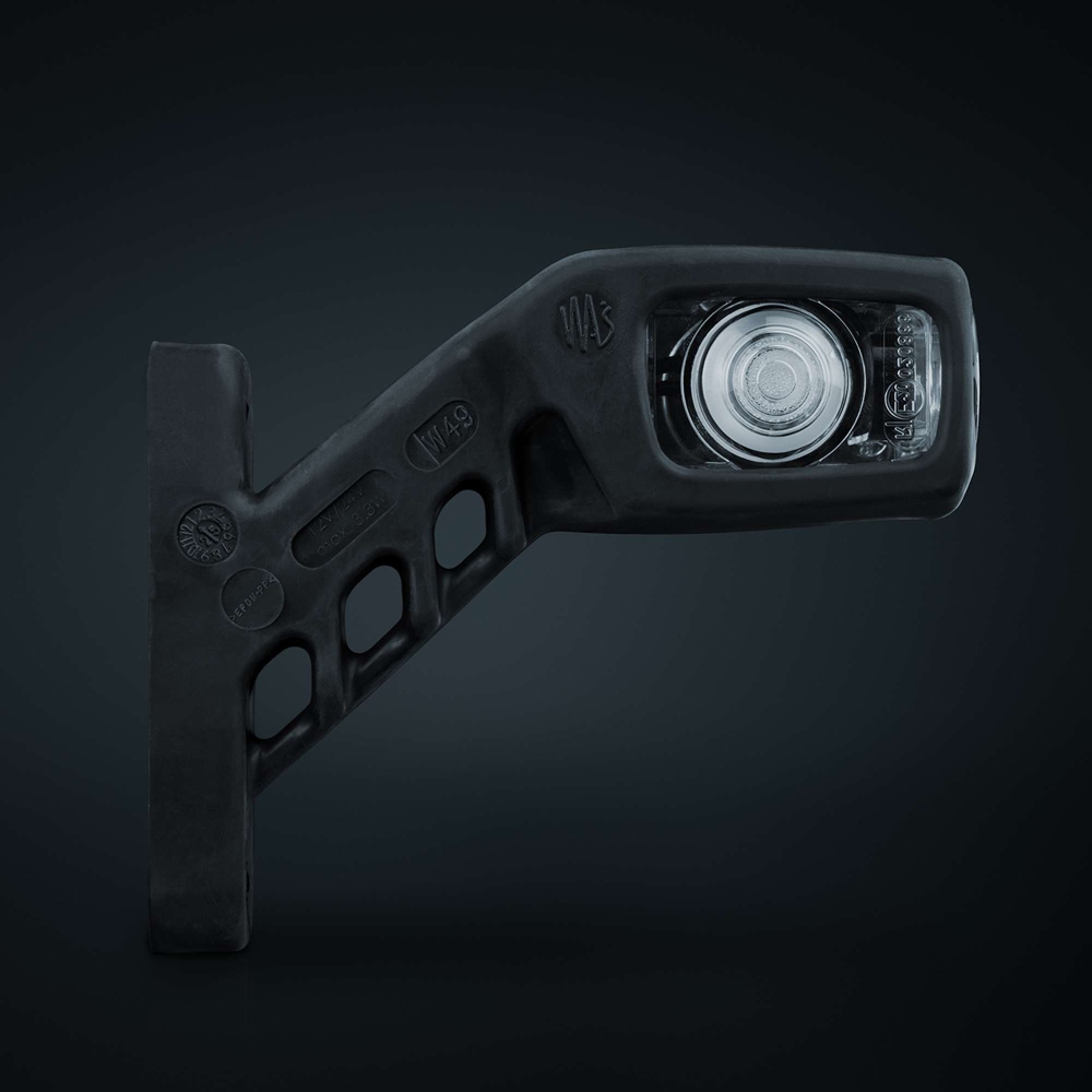 Kort gummiarm (vänster) med positionsljus och sidomarkering. Armen är lätt att montera och har klart glas som ger en snygg finish. Ett "allt i ett alternativ" som för med sig kvalité och enkelhet.Produktblad