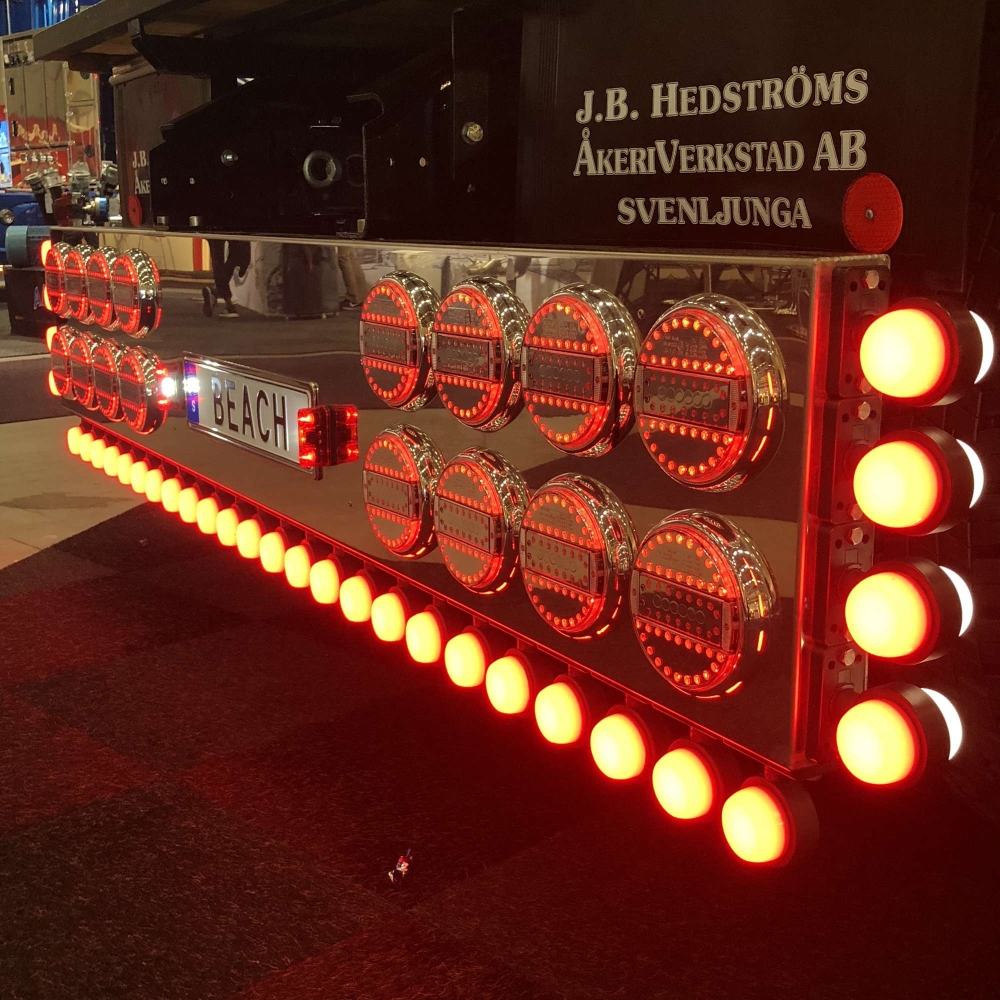 Ultra slimmad fullt E-godkänd baklampa med tre funktioner, bakljus, bromsljus och blinkers. Lampan är D-klass certifierad vilket möjliggör att lampan kan monteras som en enhet på fordonet, två per sida. Kan användas i system som är baserade på både 12 och 24 volt och är konstruerad av material i högsta kvalité vilket gör lampan både väder och stöt säker.Produktblad