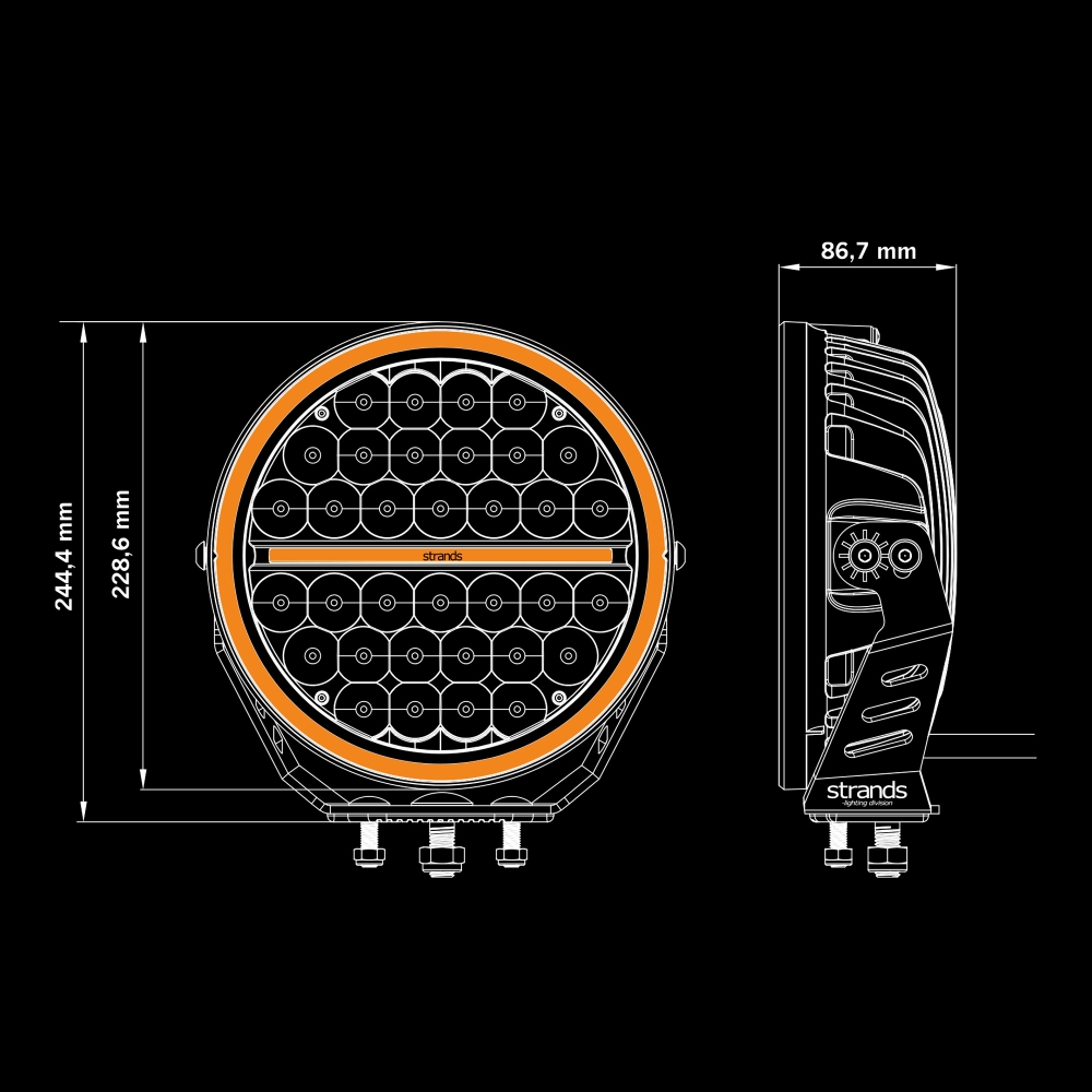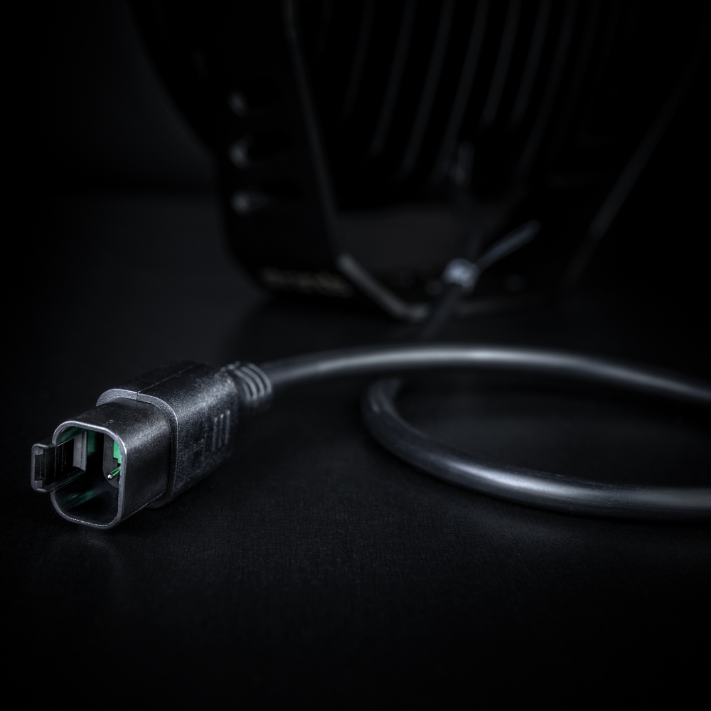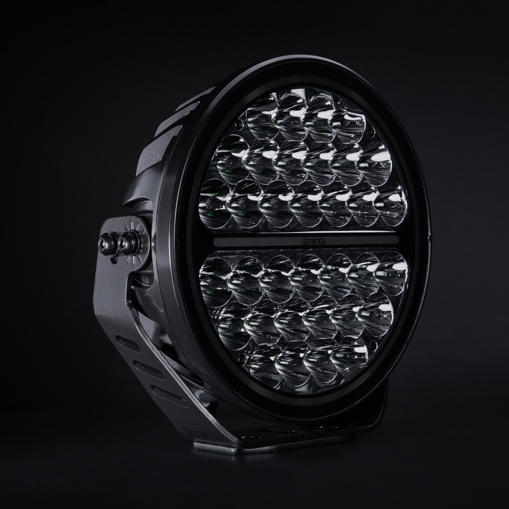 Linsen är gjord av transparent PC (polykarbonat), ett extremt starkt material med bra ljusöverföring som skyddar dioderna från stenskott och väder. Det starka svarta aluminiumhöljet tål salt och andra påfrestningar från det hårda nordiska klimatet.