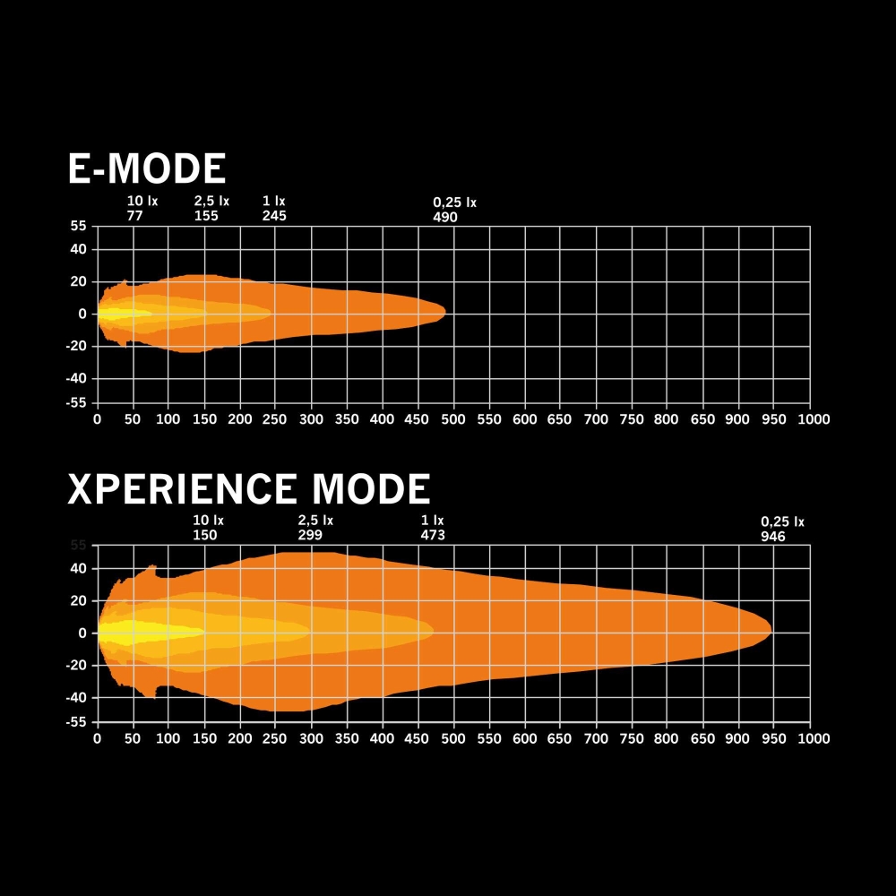 För att ytterligare anpassa din Siberia X kan du välja mellan olika linsskydd. Det här gula linsskyddet breddar ljusspridningen för ökad synlighet åt sidorna och mjukar upp ljuset och gör det mildare för ögonen. Det passar även i regn, snö eller dimma. Passar Siberia X 7" (Art. Nr. 270960). Med linsskyddet får du en bred ljusbild med 1360 faktiska lumen och 245 m räckvidd i E-mode, och 6190 faktiska lumen med 473 m räckvidd i Xperience-mode.