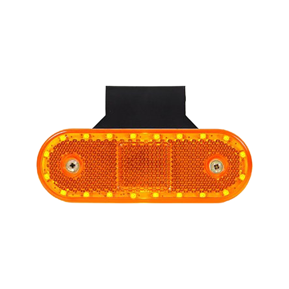 Rektangulär sidomarkering med rundade kanter, reflex och 20 LED-dioder för hög synlighet. Fäste ingår.