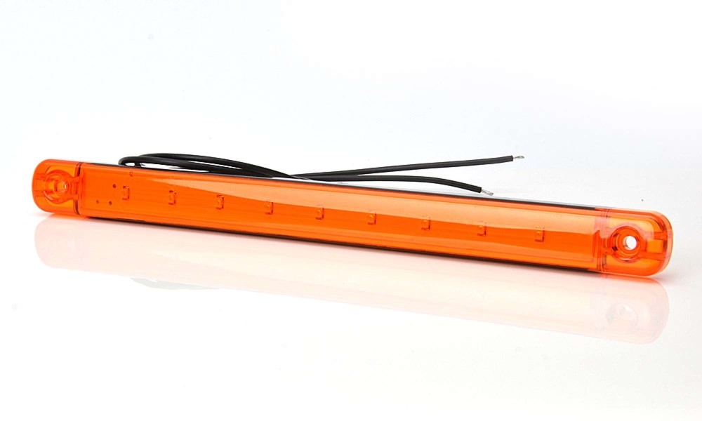 Slimmad avlång LED sidomarkering med 9 dioder med orange glas. Designen underlättar för installationsprocessen och gör lampan mycket användarvänlig.Produktblad