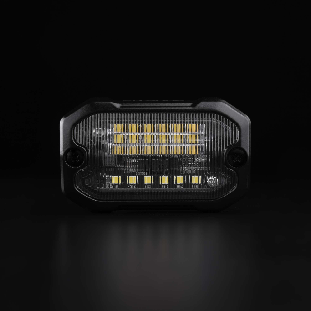 Tack vare den kompakta storleken, 78x22x48 mm och 65 mm CC, så passar Unity scene light alla fordon. Den breda ljusbilden är kraftfull och exakt, och har dessutom en låg strömförbrukning på endast 4,5 W. Färgtemperaturen på 5700 K garanterar en klar och ren ljusbild för maximal synlighet. Scene light-vinkeln på 75° riktar ljuset precis där det behövs och lyser upp en stor yta bakom fordonet.