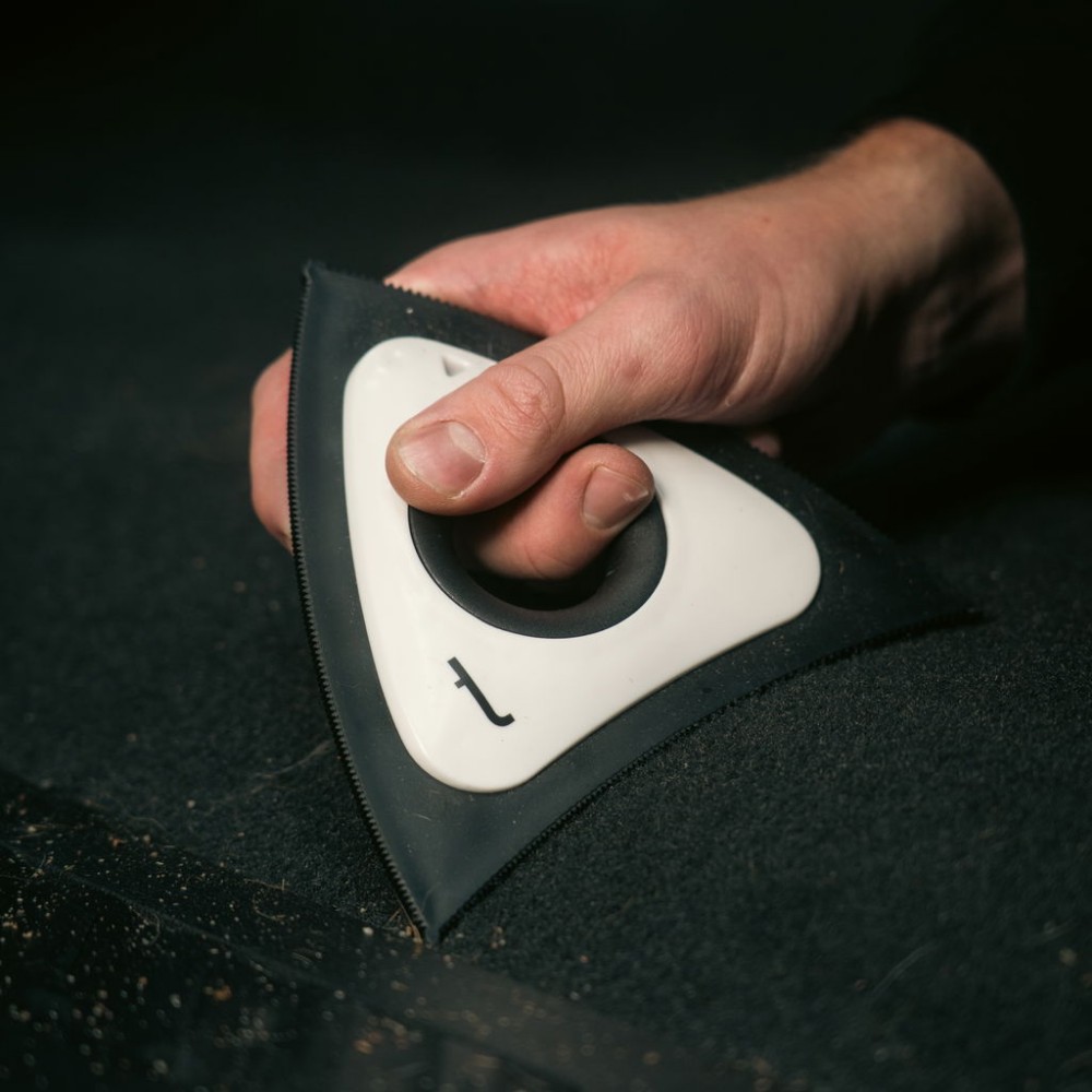Den triangelformade designen gör det enkelt att komma åt där du annars inte når: hörn, kanter, skarvar och trånga utrymmen som ofta samlar mest päls. Perfekt för bilens interiör, barnvagnar, soffor, mattor och andra textilytor som behöver snabb och skonsam uppfräschning.