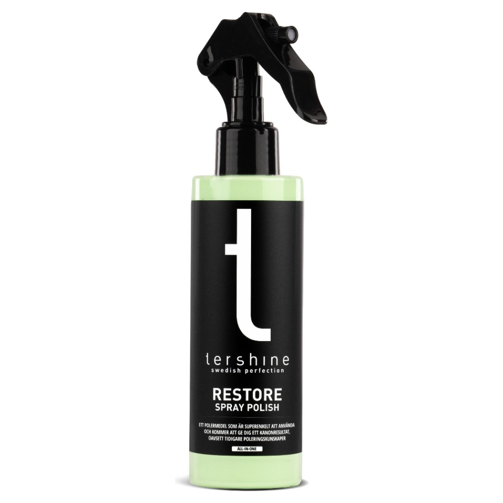 Tershine Restore - Spray Polish är ett polermedel som är superenkelt att använda och kommer ge dig ett kanonresultat, oavsett tidigare poleringskunskaper. Produkten kan både ta bort tuffa repor ända ner till 1000 grit och går även att avsluta med som ett finish-medel.