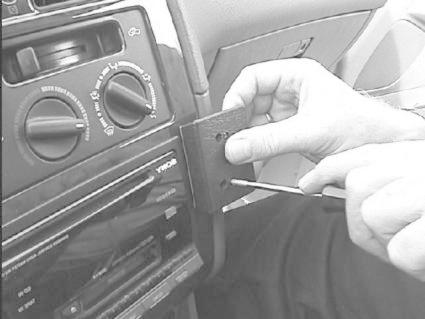 En person använder en skruvmejsel på bilens instrumentpanel.
