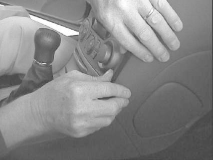 Bild visar en hand som jobbar med bilens instrumentpanel.