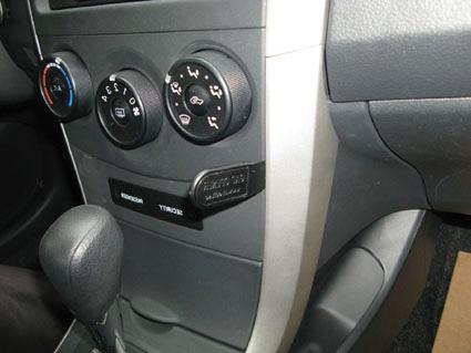 En hand justerar en del vid instrumentbrädan i en Toyota Corolla 08-11.